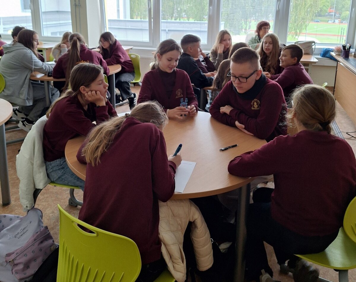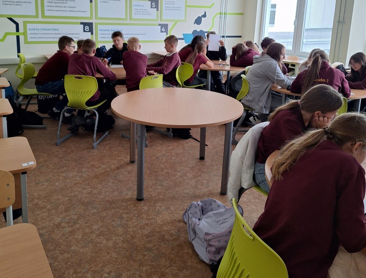 Gimnazijoje svečiavosi Jonavos Justino Vareikio progimnazijos 7a kl. mokiniai ir jų matematikos mokytoja Regina Krašauskienė. Integruotą fizikos - matematikos pamoką (protmūšį) ,,Dvyliktokas apie fiziką ir matematiką septintokui” vedė IV kl. gimnazistai Deividas Sobolevas ir Danielius Vansevičius.Visi dalyviai buvo apdovanoti saldžiomis dovanėlėmis, o sumaniausiems įteikti prizai.