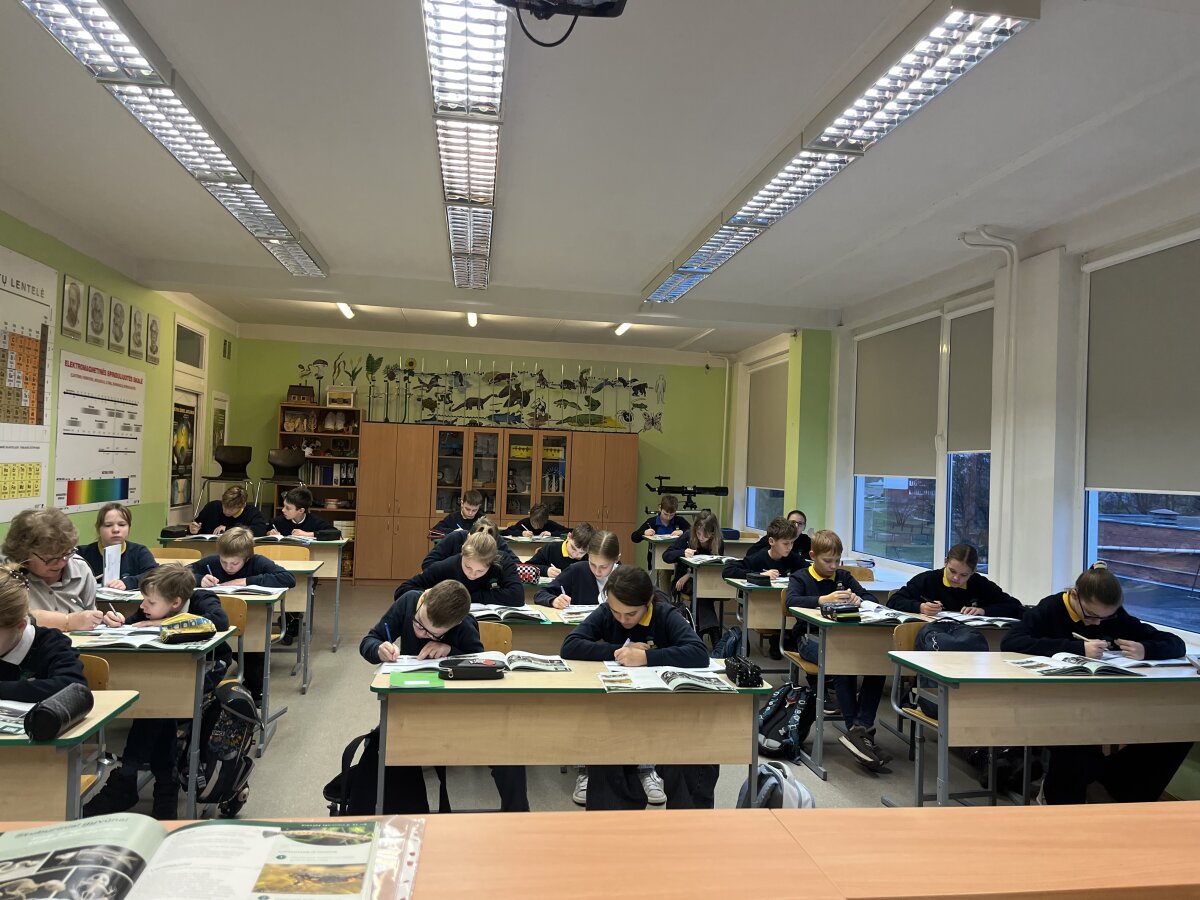 Benas, Adomas ir Trojus, Ia klasės mokiniai, lapkričio 26 dieną darbavosi Jonavos „Neries“ pagrindinėje mokykloje, kur vedė gamtos mokslų dalyko pamokas. Viskas pavyko puikiai. 5a, 5b ir 5c klasių mokiniai parodė didelį susidomėjimą ir puikiai įsisavino medžiagą. Jų atsakymai į klausimus ir užduotis buvo labai tikslūs, o vizualinės skaidrės padėjo jiems lengvai įsiminti esminius stuburinių gyvūnų požymius. Mokinių įtrauktis į veiklą buvo fantastiška.