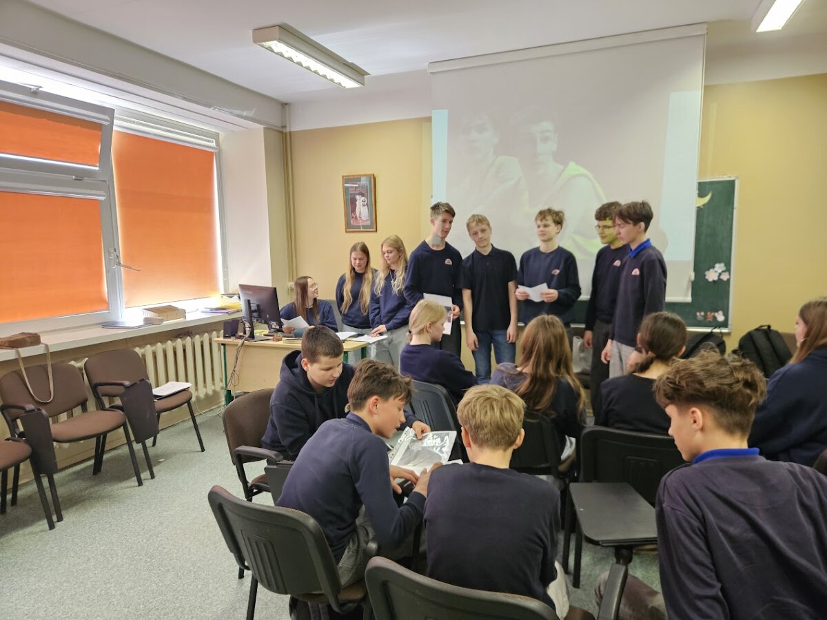 Ia klasės mokinės Luknė Bučinskaitė, Smiltė Žvalionytė, Austėja Seiliūtė parengė ir vedė etikos pamoką Raimundo Samulevičiaus progimnazijos 7 klasės mokiniams. Pamokos tema – „Socialinė žinutė portrete: kaip ją perskaityti?“