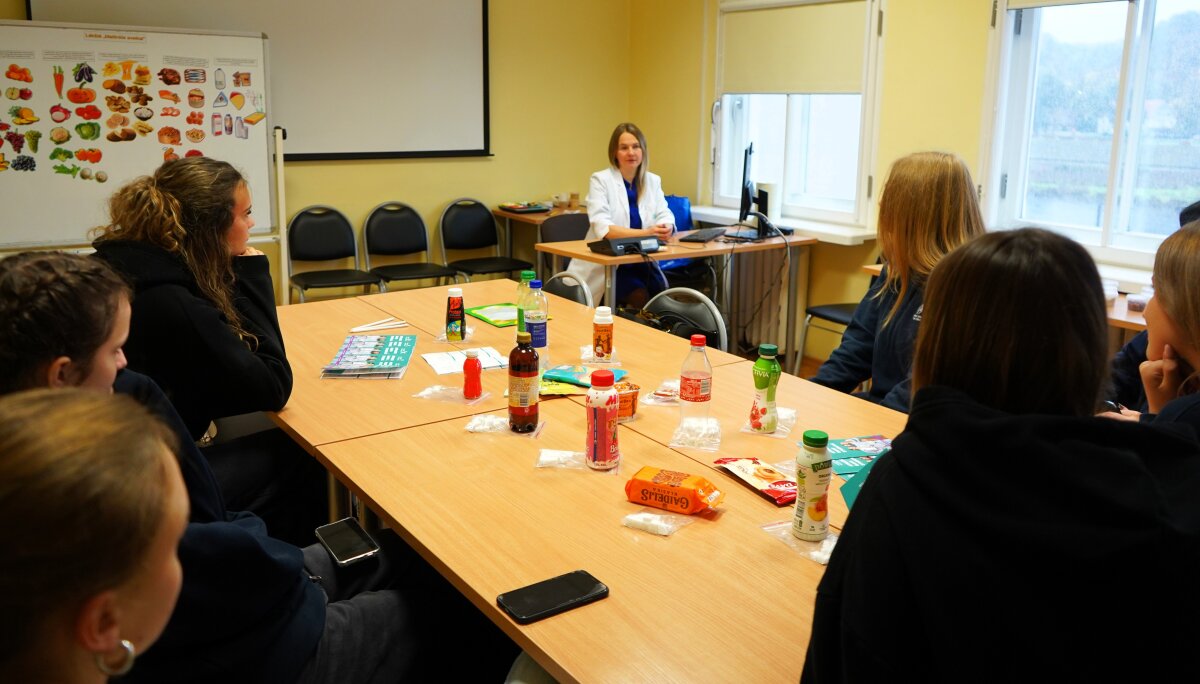 Dietetikos praktinio užsiėmimo metu dėstytoja Evelina Dailidaitė pakvietė gimnazistus ne tik įsivertinti savo kūno sudėtį segmentiniu kūno kompozicijos analizatoriumi, bet ir pažinti produktus: kurie yra turtingi baltymais, o kuriuose, net neįtartum, slypi itin dideli cukraus kiekiai.